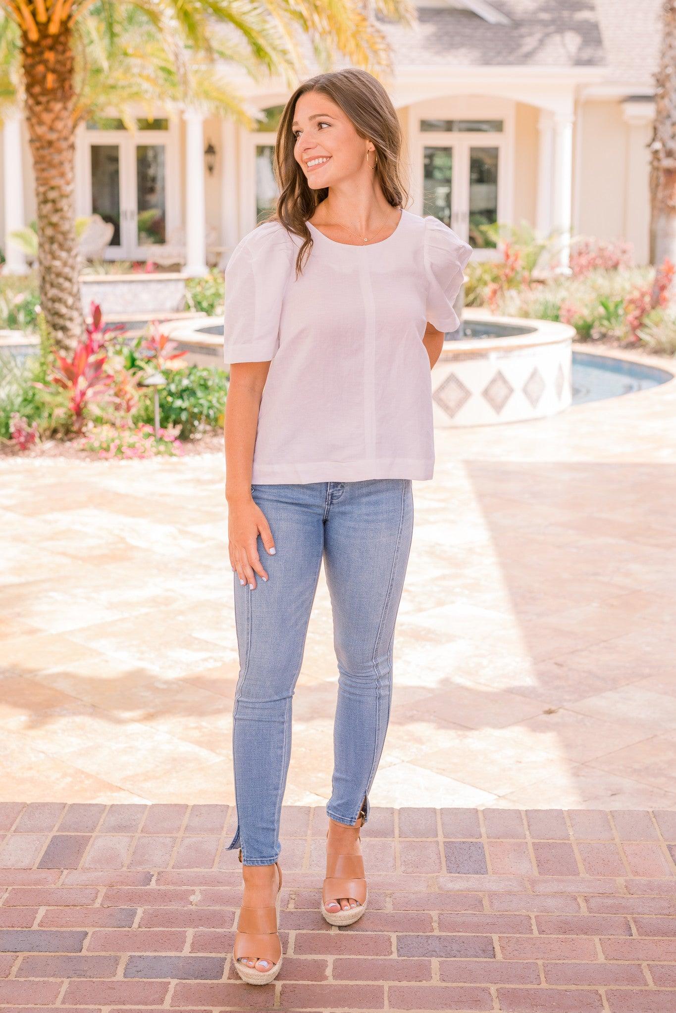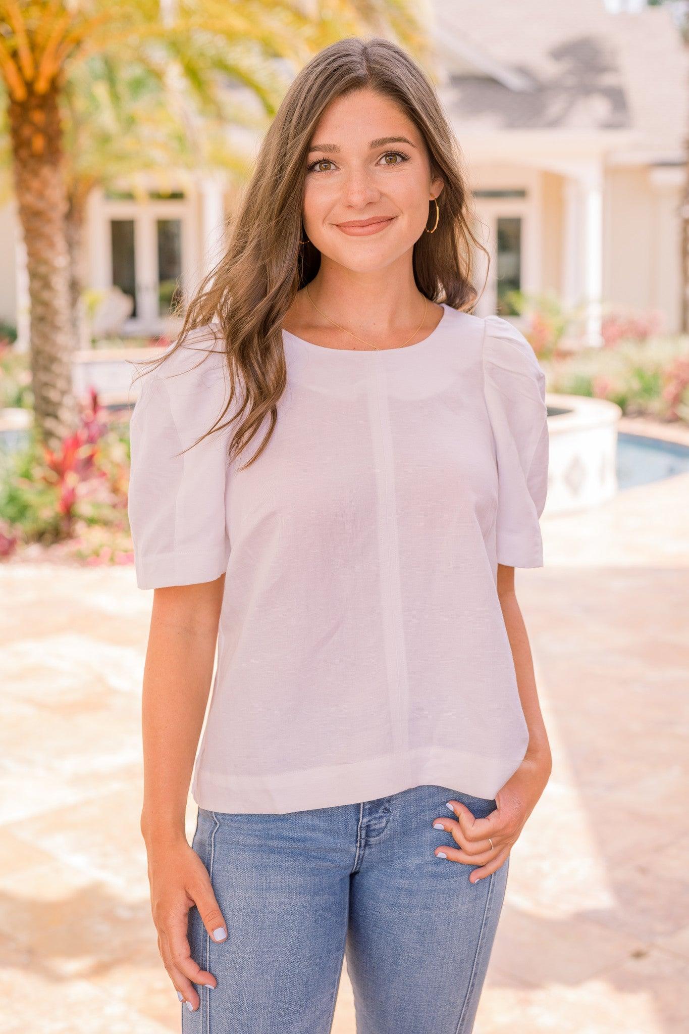 -Fits true to size-White Blouse-Short Sleeve